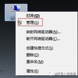 在桌面计算机图标上右键点击,弹出的对话窗中选择“管理”。