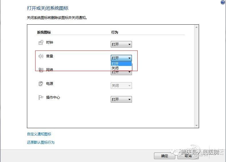 看到音量的图标了吗?看到你就成功了,将后面的行为选择为打开,就可以看到右下角的音量图标已经出来了。