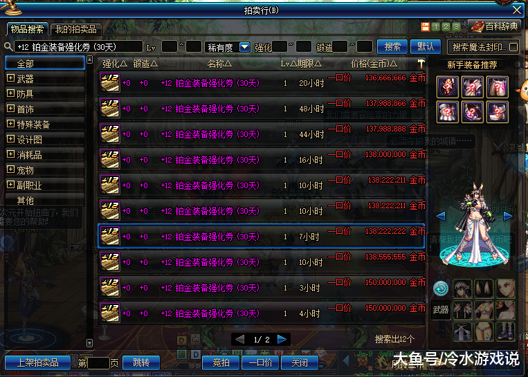 乍一看挺便宜,但是强化0的武器对于百分比职业是没用的,达到大众标准需要强化12,大家强化12圣耀都花了多少钱呢?小编当时是用了1.2个亿倾家荡产才把光剑上了12,拍卖行12白金强化卷在跨八是1.4亿一张,再加上武器附魔12属强卡,还需要1千万的附魔钱,1.5个亿成本,不知道大家能不能接受呢?