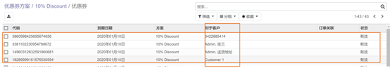 可以生产特定数量的优惠券,使用者仅仅输入优惠券的号码,即可使用。或者根据目标客户条件,为特定客户生成优惠券,客户使用专为自己发放的优惠券。且系统支持在一个优惠券方案中多次生成优惠券。
