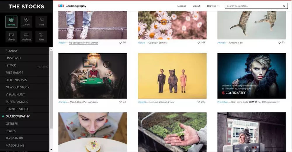 一个图片集合网站,集合了 17 家图片网站,全部支持CC0 协议!所有图片无版权免费使用! 除此之外,The Stocks 里还有多家配色、图标、视频、手机/电脑外壳、字体等网站集合。