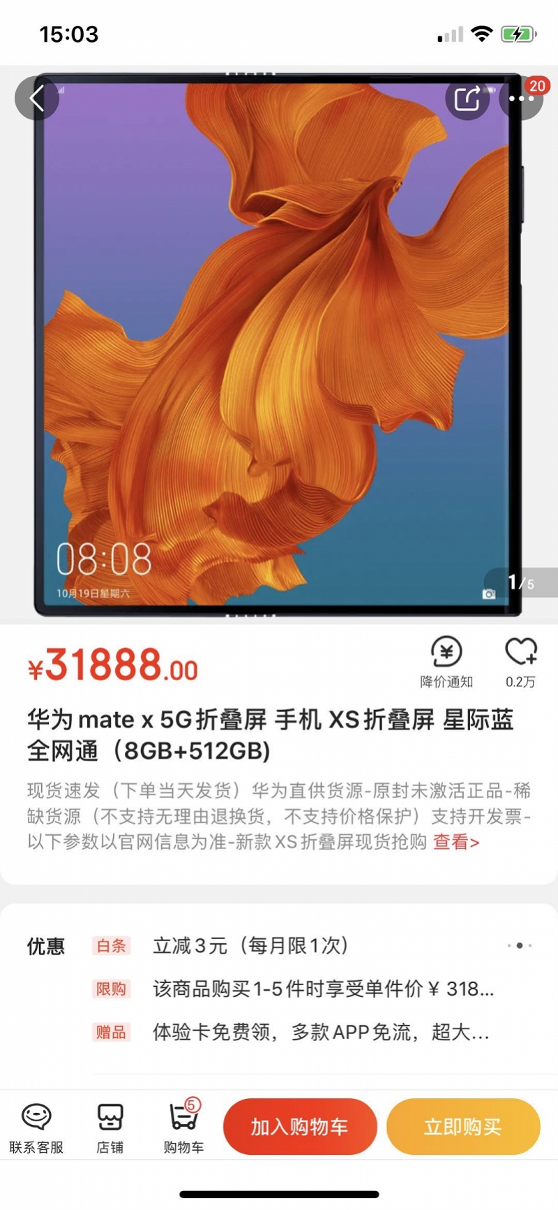 值得一提的是,此前华为第一代折叠屏手机Mate X 5G版也曾出现开卖后在短短的几秒即告售罄情况,随后与Mate Xs一样,在闲鱼上,半天之内已有不少人高价出售该机,普遍加价1万元左右,最高时华为Mate X一度被炒到8万元。而3月5日南都记者发现Mate X已经在华为商城官网下架,在电商平台上非官方旗舰店上仍有少量Mate X在售,不过价格接近两倍。