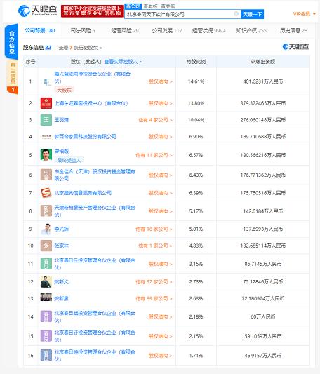 天眼查股东信息显示,本次工商变更完成后,北京搜狗信息服务有限公司位列公司第七大股东,持股比例为6.39%。与此同时,公司最大股东为蓝驰创投的投资实体之一嘉兴蓝驰雨传投资合伙企业(有限合伙),持股比例为14.61%,曾柏毅本人则位列公司第五大股东,持股比例为6.57%。此外,公司股东,还包括A股上市公司梦百合家居科技股份有限公司、东证资本等。