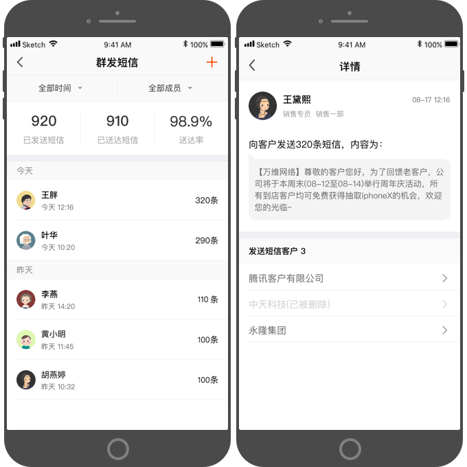 小助理为你推荐「群发短信」功能,解决上面两个问题,助力企业做好客情维护,转化潜在客户,加深品牌印象~