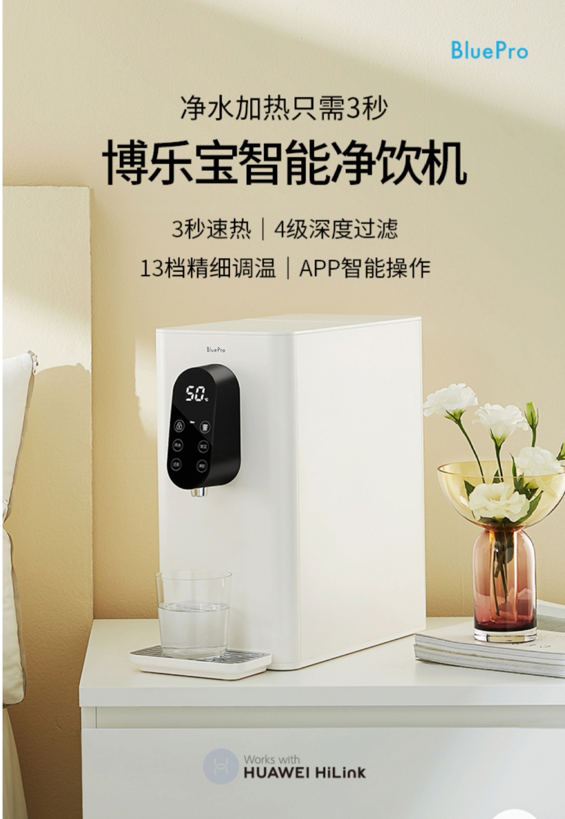 于是一台桌面净饮机是最适合我的选择,最好还要是智能产品,在华为的生态产品里搜索了一下,还真有不少支持HiLink的净饮机产品,经过一番挑选,博乐宝B16台面净饮机成为了我的首选。