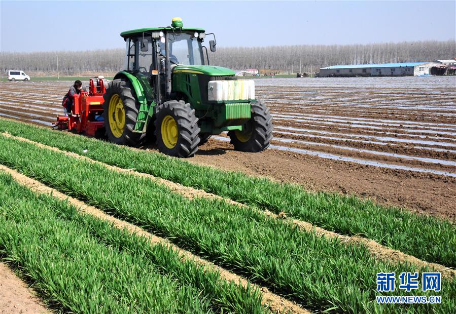 3月11日,在青岛平度市同和街道宋家赵戈庄村的农田里,青岛鸿运农机合作社的马铃薯播种机在作业。该设备由安装了北斗导航的智能拖拉机牵引。 春耕开展以来,山东省青岛市农业农村部门充分发挥1.3万个农民专业合作社的作用,8万多台(套)智能拖拉机、植保无人机等现代化农机投入农业生产,全面提高作业效率和质量。 新华社记者 李紫恒 摄