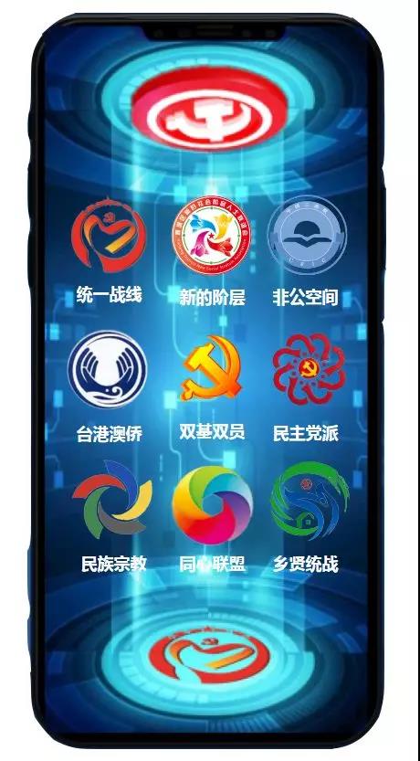 有9个功能板块:统一战线、双基双员、同心联盟、台港澳侨、民族宗教、民主党派、非公经济、新的阶层、乡贤统战。
