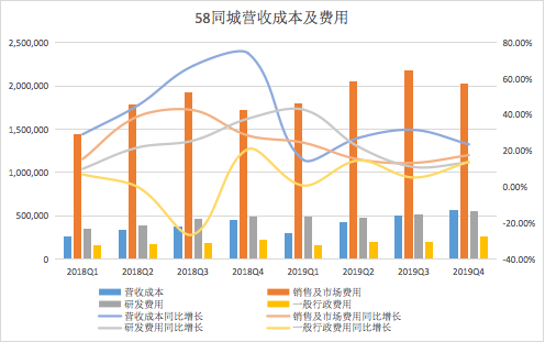 可以预计在疫情的冲击下,控制成本费用将是2020年58同城的重要任务之一。姚劲波在分析师会议上提到:“在经济形势不好的情况下,我们更加关注成本结构,更多依赖新模式(比如说合伙人机制),以及在线传递产品服务,把销售转向大客户、转向深度服务解决方案,通过智能化工具,进一步降本增效。”