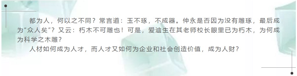 仲永五岁时,“自是指物作诗立就,其文理皆有可观者”,肯定说得上是人材吧!他在很小的时候就展现出他是一块可造的材料。可是为什么后来“泯然众人矣”呢?而“低能儿”爱迪生,却为什么最终成为“发明大王”和“科学界的拿破仑”?这一切离不开“教育”两字。仲永的父亲,不让仲永继续教育,而是“日扳仲永环谒于邑人,不使学”,而爱迪生的母亲,即使爱迪生被撵出了校门,也没有放弃对他的教育。当爱迪生对某个事情感兴趣,她为爱迪生买来书籍;当爱迪生试验失败了,她鼓励爱迪生不要放弃;当爱迪生孤独的时候,她陪伴他到快乐拾起。这其中,后天的教育对于“材”雕琢的重要性不言而喻。