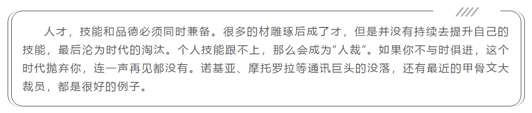 回到我们的标题,华为的钱砸哪儿了?在2018年华为投入的研 发经费高达上千亿,占其全球总收入约14%,而对人才的吸引更是给予高薪酬加高福利,从而让人才转化成公司的财富,创造价值。这些企业大部分,还有自己的大学或者管理学院,让自己的员工在工作之余继续教育,技能得到持续的提升。