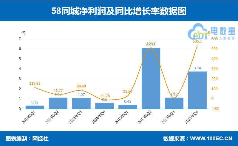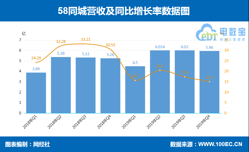 财报显示,2019年第四季度,58同城、安居客等平台付费商户数约330万,会员服务贡献了11.1亿人民币(1.6亿美元)的营收,在线推广服务本季度实现营收27.1亿人民币(3.9亿美元),人民币同比增长19.3%。其增长主要来自58同城、安居客在线推广服务(如实时竞价系统)的日益普及和效率的提升。