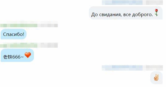 拉里奥诺夫通过社交网站,知道了中国的“老铁”等网络流行语。从去年下半年开始,他每次和京东客服交流,都会在结尾用中文写上“老铁666”。