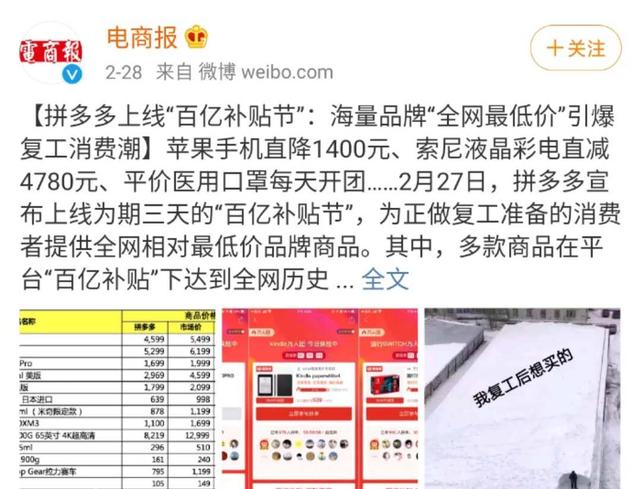 而拼多多也承诺,将把"百亿补贴"作为一种长期策略。今年2月,拼多多就推出"百亿补贴节",补贴力度从此前的20%最高增长至50%。