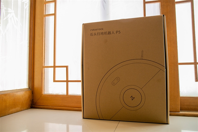 石头扫地机器人P5采用了非常简约的牛皮纸箱包装。由于产品尺寸本身就挺大的,所以包装的块头自然也不小。