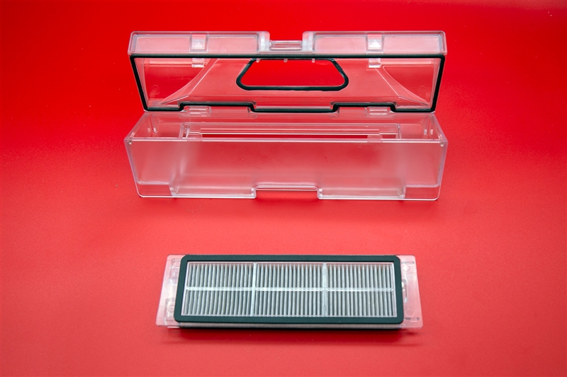 尘盒也是借助简单的卡扣固定在扫地机器人之中,非常轻松就可以取下。尘盒的滤网等结构都可以拆除,你可以直接水洗清洁。