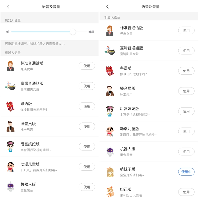 石头扫地机器人P5支持与市面上多款AI智能音箱的接入,通过它们你甚至不用打开APP,通过简单的语音指令就可以完成控制。内置音箱及语音机器人,可以针对你的命令用语音的形式完成交互,让机器人的工作流程更加清晰,使用体验也上升了一个档次。APP中目前提供了9种声音,日常使用听机器人卖萌也非常有趣。