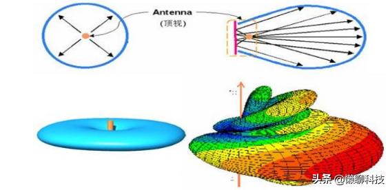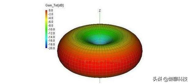 路由器信号是频射芯片,通过电缆输送到天线,由天线以电磁波形式辐射出去,如下图中就是路由器天线的辐射原理。中间是天线,信号向四周扩散,而路由器顶端与低端的信号最弱。