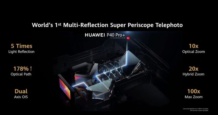 作为目前市面上主流旗舰的唯一支持10倍光学变焦的手机,华为P40 Pro+采用华为独创的10倍变焦结构,等效焦距240mm,通过多镜光路折射,让潜望镜头多次折叠,用更高的倍数的光学端做到100倍变焦。并采用了透光率更高的玻璃镜头,透光率更高,鬼影和炫光少,光晕柔和。