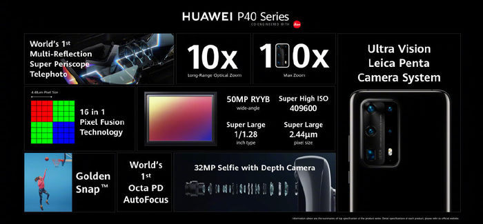 可以看出,华为P40 Pro+最大的升级在于摄像模组,搭载了超感知徕卡五摄,包含5000万像素的超感主摄+4000万像素的超感光电影镜头+800万像素3倍光学变焦镜头+10倍超远距光学变焦摄像头+3D深感摄像头。其中,两枚变焦摄像头组成业界首个超远距光学变焦系统,支持10倍光学变焦、20倍混合变焦以及最高100倍数字变焦。