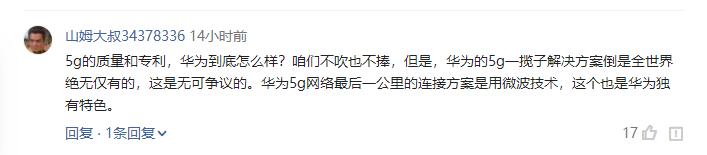最后在5G行业技术竞争方面,爱立信高管也对此坚定地表示:“爱立信的5G技术绝对处于全球遥遥领先的地位,但由于爱立信5G技术要在全球实现5G网络部署,也是要得到运营商以及相关供应的设备以及技术支持,所以希望在5G技术创新方面能够在各个公司之间实现共享,让5G技术技术能够快速落地、让更多的人都能够享受到5G技术所带来的快乐,这对于整个5G行业竞争也都是非常有利的;”针对爱立信这位高管表态,国内也有不少网友直接表示:“华为5G技术到底怎么样?咱们不吹也不捧,但是,华为的5G一揽子解决方案倒是全世界绝无仅有的,这是无可争议的。华为5g网络最后一公里的连接方案是用微波技术,这个也是华为独有特色。”