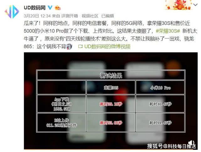 前几天,有博主晒出了荣耀30S和小米10 Pro 5G网速对比。