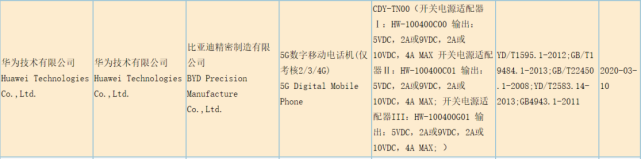 最近一款型号为CDY-TN00的华为旗下新机,通过了3C认证,大概率是荣耀30S。