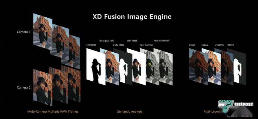 在发布会上,华为CEO余承东还介绍了XD Fusion引擎,它支持同时拍摄多张照片,依靠ISP对图像进行处理,保留更多细节与色彩还原,同时也可以利用AI技术对背景虚化进行加强。此次系统种新加入的AI精彩瞬间功能,可以通过捕捉脸部信息,自动寻找一组连拍中的最佳照片,同时支持路人消除与反光消除。