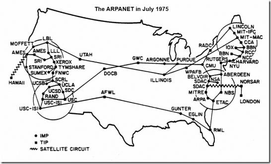 为了能把各项目组的局域网连接在一起,泰勒1967年邀请日后成为“阿帕网之父”的拉里罗伯茨(Larry Roberts)加入IPTO,1969年底,阿帕网成功投入运行。发展到1975年,阿帕网终于把大部分美国大学和研究实验室的局域网连接在了一起。