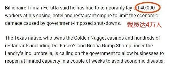 例如赌场,酒店,以拉斯维加斯为例,费尔蒂塔在那儿拥有多家带赌场的金砖酒店。本次的裁员主体,也是这些赌场,酒店的工作人员。