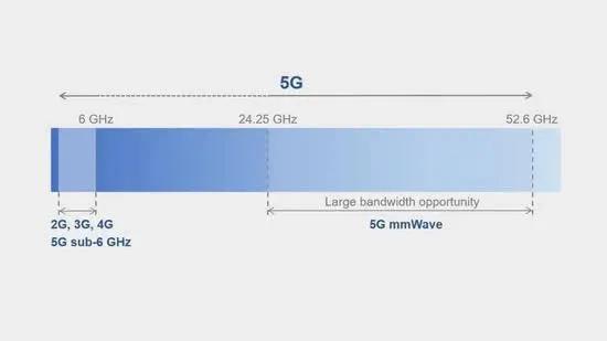 目前全球5G在两个频段进行部署:一个是Sub-6GHz频段,从450MHz—6GHz;另一个就是毫米波频段,从24.25GHz—52.6GHz。