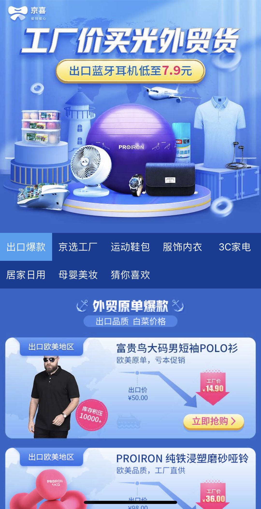 4月6日晚间,京喜紧急上线“工厂价买光外贸货”会场,助力外贸商家打开销路。联动京喜直播百大专项主播团队,构建产业带直播基础能力,产业带溯源直播+商家自播培训多模式赋能,打通商家直播带货新能力。同时,开通了“ 京喜工厂”、“京喜农场”、“京喜砍价”、“天天赢免单”等60多种王牌社交玩法开放平台,帮助商家快速获取粉丝流量,转化助销。在一定程度上减轻了外贸商家的库存压力,回流资金,经营情况慢慢在好转。