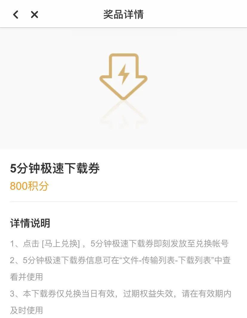 这 1000 积分可兑换爱奇艺 VIP 月卡或者其他奖品,比如花费 800 积分可兑换急速下载券一张。