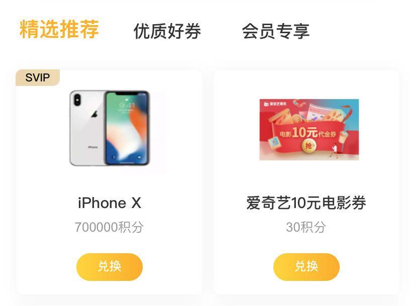 而这 1000 积分能兑换一次爱奇艺 VIP 月卡,价值 8 元(连续包月价)。