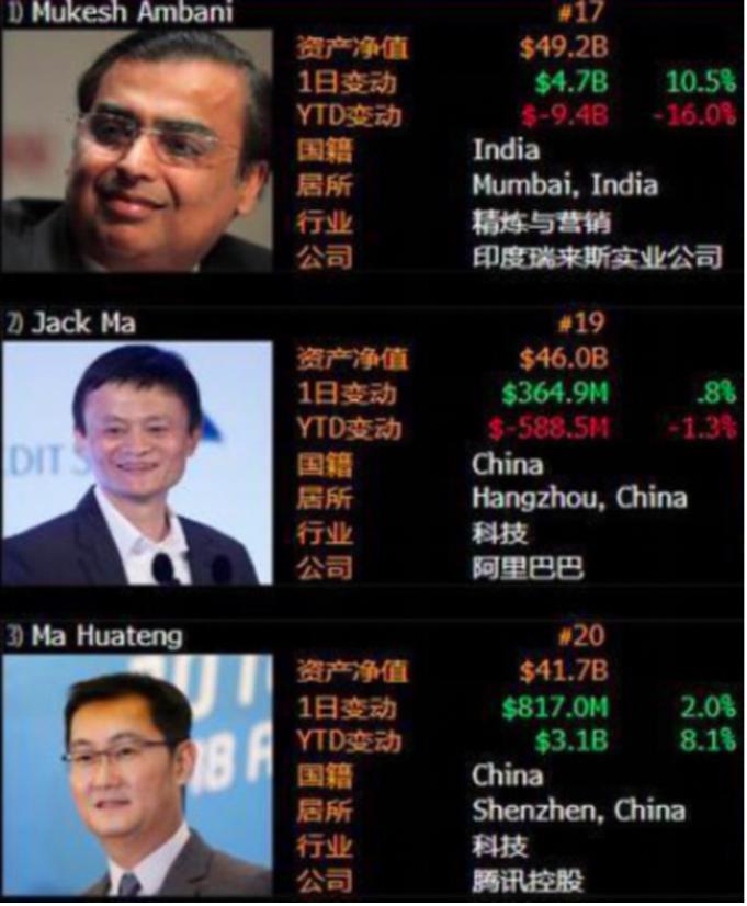 北京时间4月23日,根据彭博亿万富豪指数, 印度能源巨头穆克什·安巴尼在富豪榜上超越马云,重夺亚洲首富位置。
