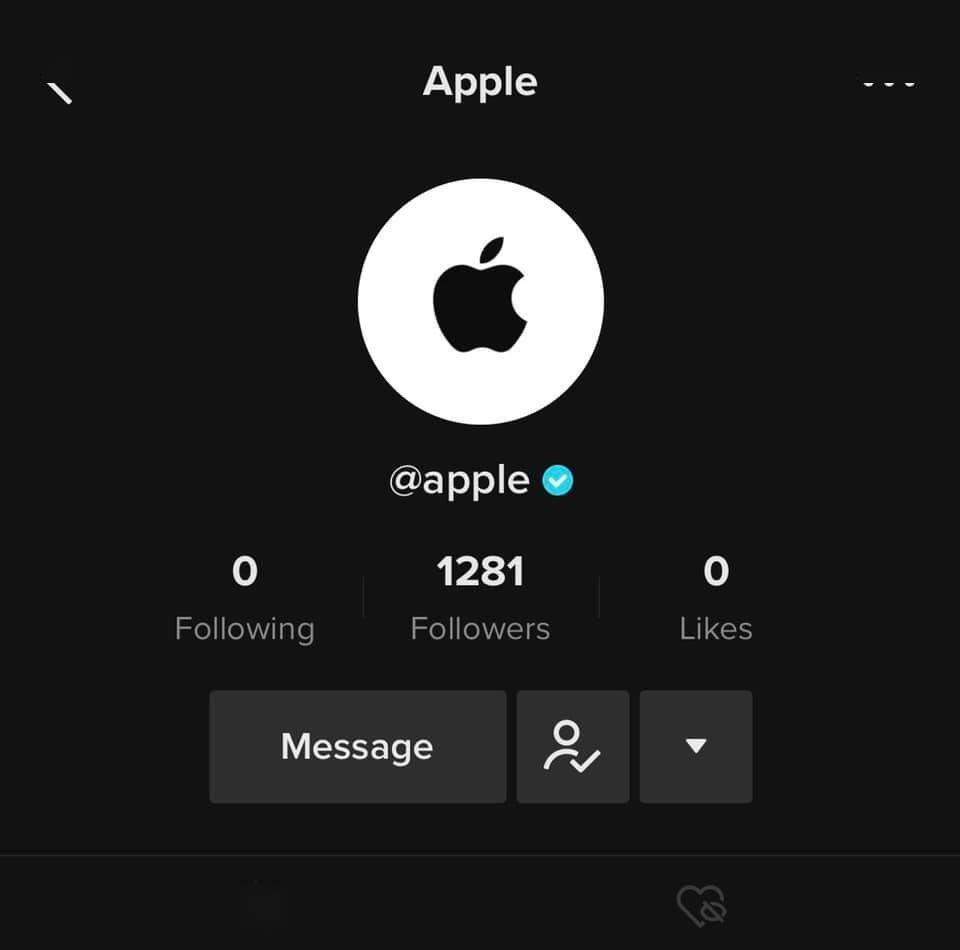 4月24日消息,据外媒报道,苹果官方开通了国际版抖音(TikTok)账号,并且通过了官方认证。目前,该账号没有关注任何人,也未发布任何内容,但粉丝却已经涨到了1281。