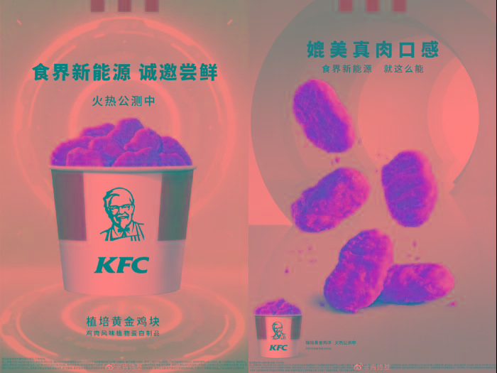 4月20日,肯德基发布“食界新能源”,将在中国正式公测“植培黄金鸡块”。