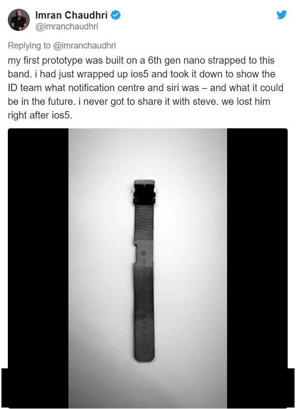 最初的“ Apple Watch”原型机是使用绑在“ Apple Watch”表带上的第六代iPod Nano制作的,用来展示Siri和通知中心作为早期Apple Watch的关键功能。