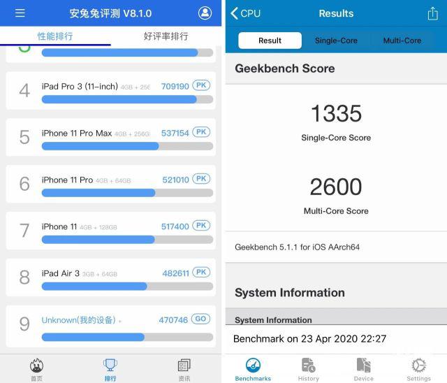 跟 iPhone SE 价格差不多的安卓机呢,要么是年初的 765G 产品,要么是 855Plus 机型居多。这么比起来,首先 A13 这性能就真心强。GeekBench 5 跑分单核 1335 ,多核 2600;安兔兔跑分 470746 ,正好位于 iPhone 11 和 XR 之间。不光性能强悍,卡位也相当精准。