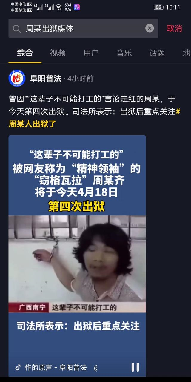 靠一句“打工是不可能打工的,这辈子都不可能打工的”而成为网红的广西南宁市周某人,于2020年4月18日出狱!