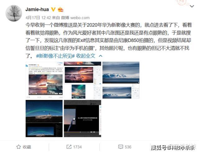 一名叫@jamie-hua的微博博主在看到华为官方的宣传视频之后就点进去看了一下,结果发现宣传视频中的许多照片都是由专业相机进行拍摄的,但是华为官方却标注称这个视频中的图片都是由华为手机进行拍摄,并给出了相应的证据,从该博主的微博来看,华为这次确实是被抓包了!