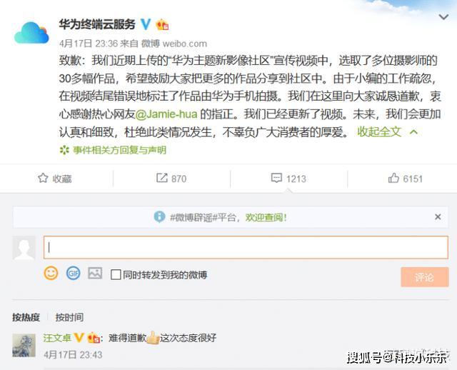 对此,@华为终端云服务 官方迅速做出回应,表示这是由于小编的工作疏忽所导致的,为此华为向大家道歉,并感谢这位网友的批评指正,今后华为会更加认真、细致工作,杜绝此类情况发生。