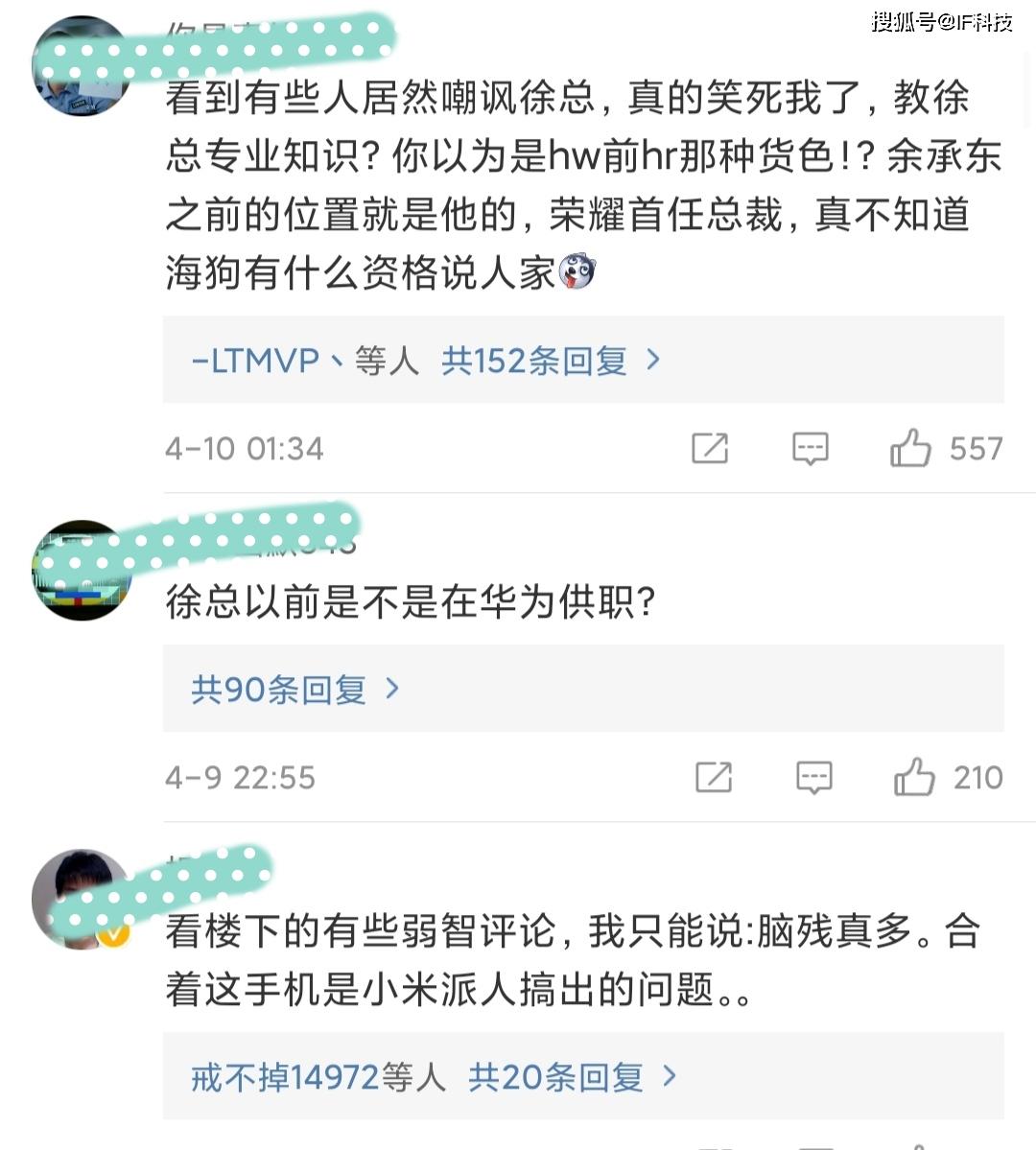 其实这本应该是华为售后该解决的问题,然而有意思的是,很多花粉以为这名用户是米粉故意黑华为手机,开始在评论中怒撕该用户。然而他们并不知道徐昕泉之前在华为担任高管,还担任荣耀手机总裁,据悉后来去了京东和乐视。到现在一直使用华为手机,说明证明高管对华为还是有感情的,然而却因为说出其所使用的手机出现质量问题而被喷,确实很无奈。
