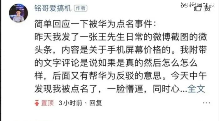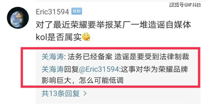 这种未经证实的屏幕成本价消息惊动了荣耀高管,其中申开朗发文称已转法务。据称荣耀已经将一些大量转发该帖子的数码博主列入名单,随时起诉造谣,消息公布后,这些博主立刻进行删除帖子并发文道歉称他也是从其它地方复制过来的。