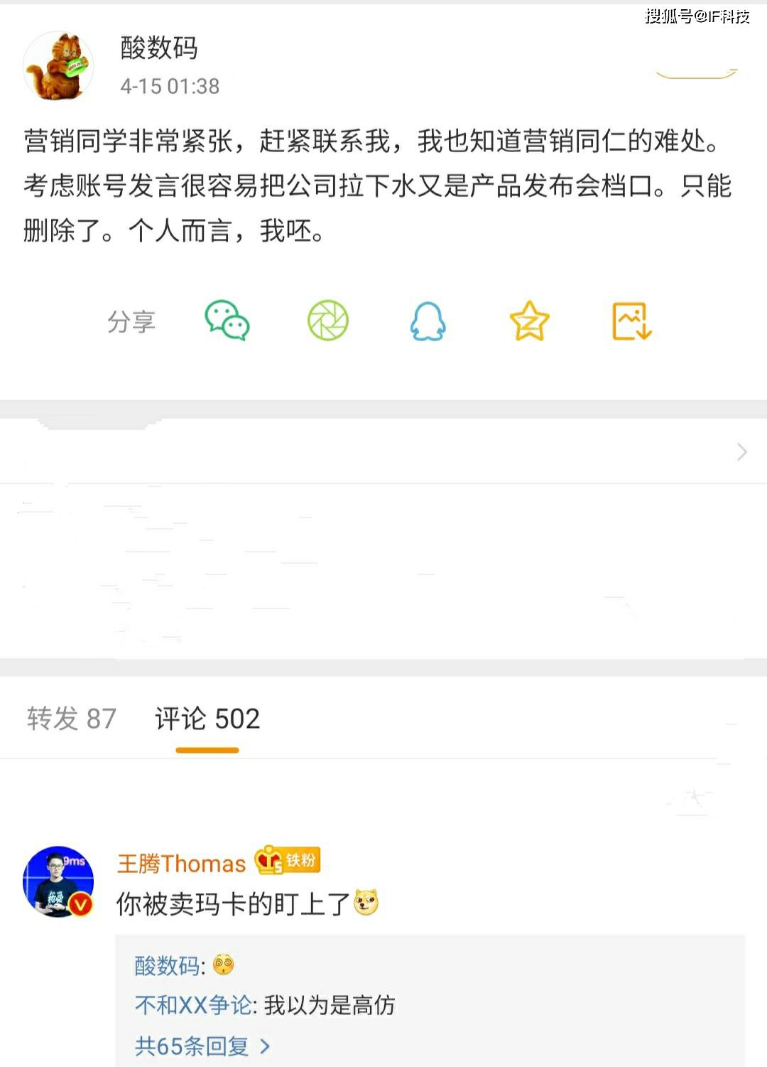 刚刚一加产品经理发文称“营销同学非常紧张,赶紧联系我,我也知道营销同仁的难处。考虑账号发言很容易把公司拉下水又是产品发布会档口。只能删除了。个人而言,我呸”。随后小米高管潘九堂评论称“是不是也终于体会到“我们被黑惨了”,然后理解为何粗粮的中高管忍无可忍,不顾个人声誉公开出来怼?最伟大的公司,背后也有最无耻和下流的一面,为达到目的不择手段,很多不读书/不思考/不了解行业史和企业史的路人不知道这一点,还成帮凶”。