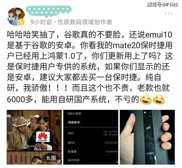 华为每一代的mate系列确实有一个保时捷版本,售价超一万元,买的人相对少一些,所以该博主说mate20保时捷版运行鸿蒙1.0系统可能很少人注意。不过也有人说如果手机用上鸿蒙系统,早就上热搜了,当然也有网友说华为现在在系统方面的升级很低调,比如EMUI系统不断掏空安卓底层,华为官网不知不觉将emui基于安卓改为兼容安卓。