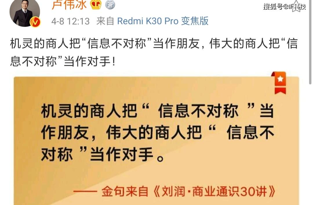 值得一提的是,卢伟冰在P40系列新机发布当天发文称机灵的商人把“信息不对称”当作朋友,伟大的商人把“信息不对称”当作对手!总之从余承东接受采访的回应来看,华为应该是憋了很久了。那么对此你有什么看法呢。
