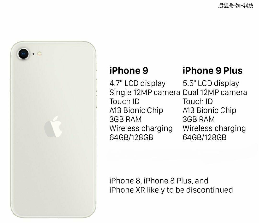 其它硬件配置方面变化不是很大,iPhone9/9Plus均采用LCD display屏幕,后置1200万像素,支持Touch ID,3GB运行内存,64GB/128GB存储可以选择,喜欢小屏幕可以选择4.7英寸版本,另外还有5.5英寸大屏幕版本。简单来说,iPhone9系列和8系列外观相似,处理器性能强大一些。