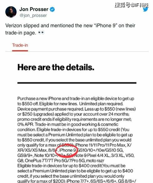 就在刚刚,国内电商平台上架iPhone9,同时该机也出现在美国电信运营商Verizon的以旧换新活动页面上。这说明iPhone 9将在4月份发布已经不是什么秘密了。据悉该机或于4月15日全网开售,另外不会举行新机发布会。根据外媒曝光的价格中,iPhone 9起售399美元,大约2800元,iPhone9 Plus起售499美元,大约3500元。