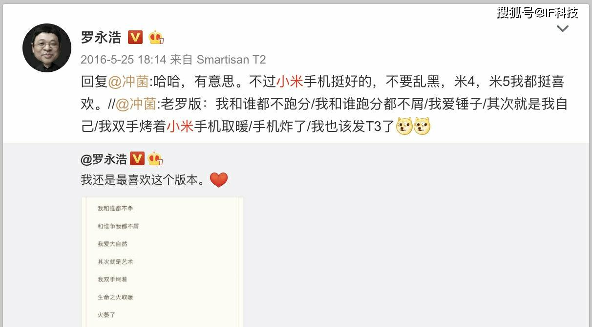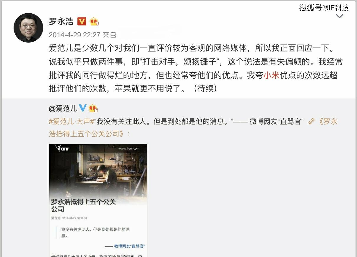 总之老罗宣布进入直播带货时,有大量网友对其进行抨击,现在取得巨大成功之后,又有很多人抨击老罗带货小米产品。就在刚刚,罗永浩首次发文嘲讽这些水军,称“电商首播推荐了小米手机和米家产品后,毫无意外地,傻x们又兴奋起来了,纷纷表示“你现在为了赚钱连小米的产品都推荐?你当初是怎么说小米的?!” 多少有点意外的是,很多锤友和老朋友也以相对温和的方式表示了同样的意思。好像我为了赚钱,做了什么扭曲人格的事。因为这两年记忆力有些变差了,于是我就让同事帮我彻底搜集整理了一下我“当初是怎么说小米的”给我看看。结果发现跟我的记忆基本一样:我多年的公开言论里,虽然也多次批评讽刺过小米做得不好的事(其中有两次批评错了,后来做了公开道歉),但整体上,对小米一直都是高度肯定的态度。以下的附图是13~20年间的部分相关言论(只能贴18张)”。