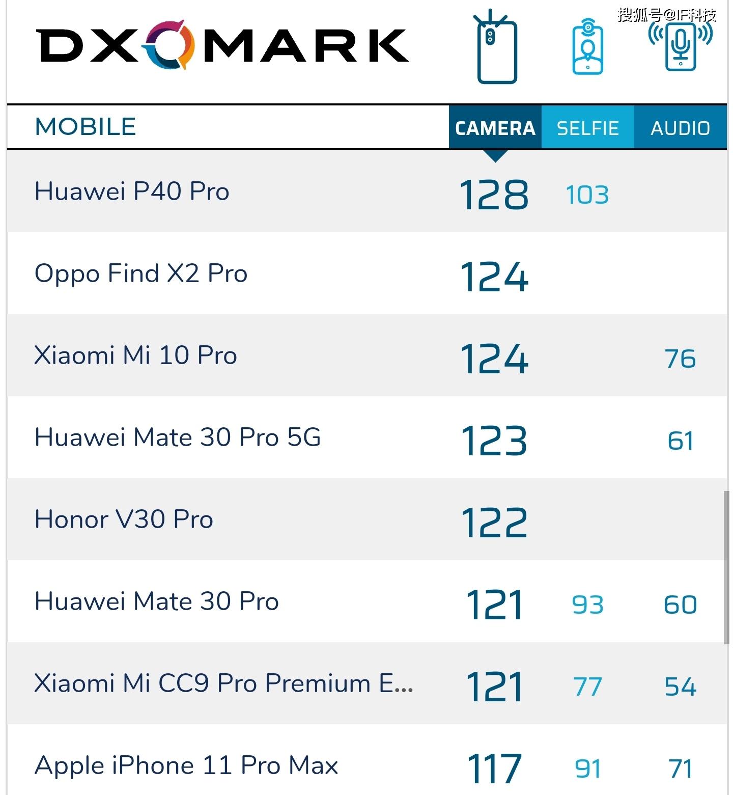 万众期待的P40系列终于发布,其中的P40Pro和P40Pro+最让“花粉”关注,虽然P40系列新机的大部分硬件配置不如骁龙865手机,但拍照却很强大,余承东在发布会上并没有直接公布新机的DxOMark相机得分,但就在刚刚,DxOMark公布了华为P40 Pro的相机得分,拍照部分得分140,视频105分,总得分128分,位列榜单第一,领先第二名OPPO Find X2 Pro和小米10 Pro四分。前置相机拍照得分103分,同样排名第一。